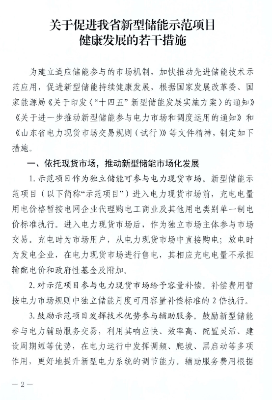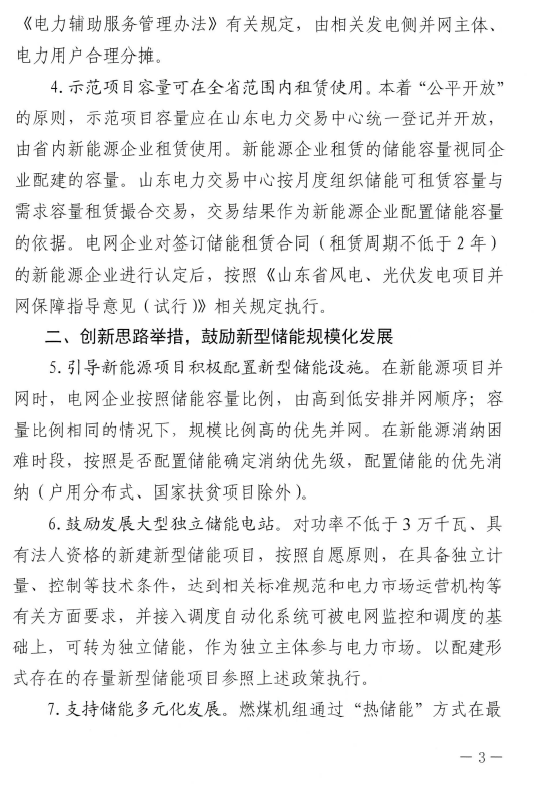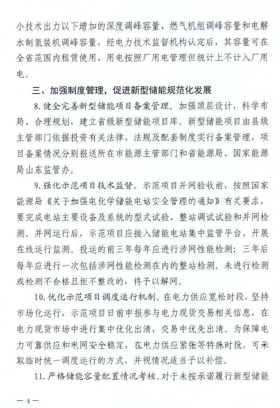 據(jù)了解,山東省此次發(fā)布的《關(guān)于促進我省新型儲能示范項目健康發(fā)展的若干措施》是全國第一套電力現(xiàn)貨市場儲能支持政策,而且創(chuàng)新了容量租賃機制,技術(shù)監(jiān)督機制等,在全國范圍內(nèi)都是有較強的示范意義。