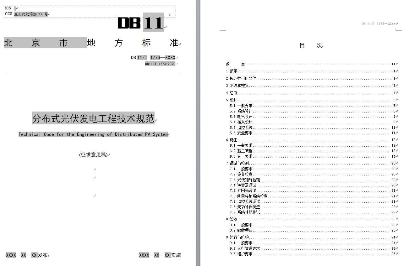 26日,北京市發(fā)改委印發(fā)關(guān)于對《分布式光伏發(fā)電工程技術(shù)規(guī)范》(征求意見稿)等7項北京市地方標(biāo)準(zhǔn)公開征求意見的通知,由北京市發(fā)展和改革委員會組織制修訂的《分布式光伏發(fā)電工程技術(shù)規(guī)范》《再生水熱泵系統(tǒng)工程技術(shù)規(guī)范》《地埋管地源熱泵系統(tǒng)工程技術(shù)規(guī)范》《分布式光伏發(fā)電系統(tǒng)電氣安全技術(shù)規(guī)范》《光伏建筑一體化設(shè)計要求》《中深層地?zé)峁峒夹g(shù)規(guī)范 井下?lián)Q熱》《中深層地?zé)峁峁こ碳夹g(shù)規(guī)范 水熱》等7項北京市地方標(biāo)準(zhǔn)征求意見稿已完成。根據(jù)《北京市地方標(biāo)準(zhǔn)管理辦法》的要求,現(xiàn)在公開征求意見。