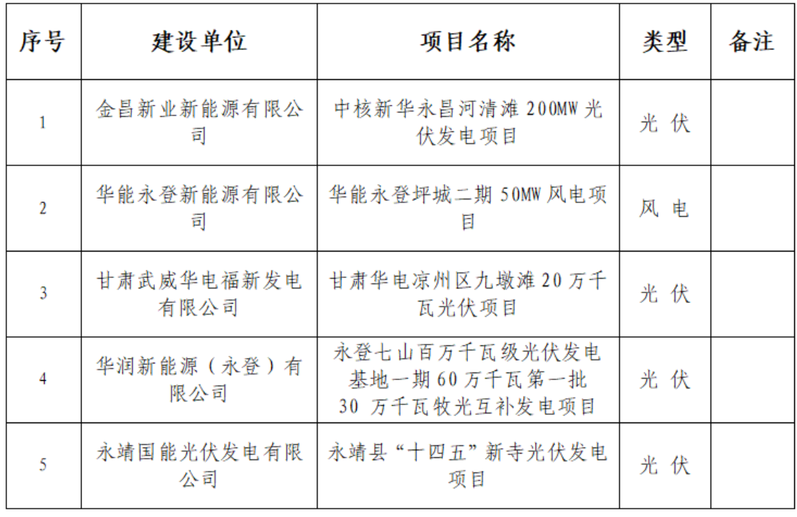 10月20日,甘肅能源監(jiān)管辦公示電力建設(shè)工程施工備案,光伏項(xiàng)目4個(gè),風(fēng)電項(xiàng)目1個(gè)。