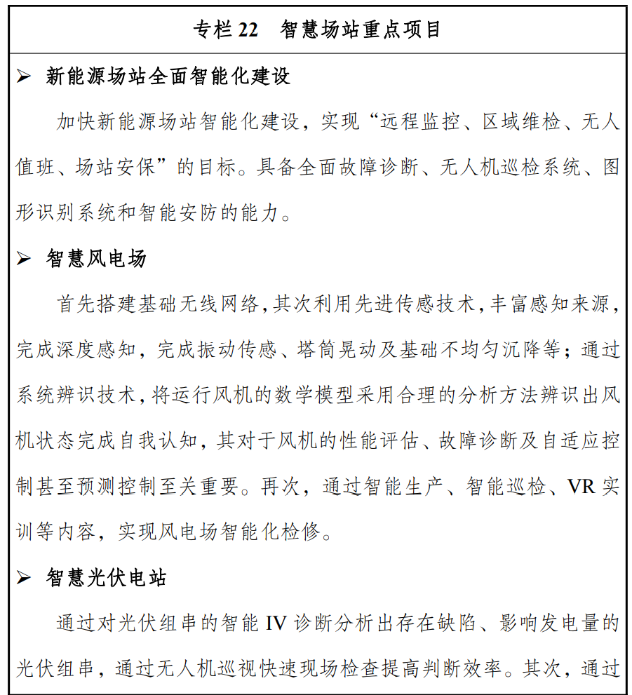 到 2025 年,規(guī)劃建設(shè)一批智慧風(fēng)電場(chǎng)、智慧光伏電站。