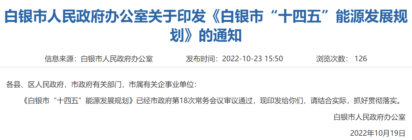 近日,白銀市政府發(fā)布《白銀市“十四五”能源發(fā)展規(guī)劃》。規(guī)劃提出,“十四五”期間,全市共規(guī)劃新建光伏項(xiàng)目252.5萬(wàn)千瓦,總投資約99.74億元; 新建風(fēng)電項(xiàng)目154萬(wàn)千瓦,總投資約85.47億元; 新建抽水蓄能電站2座,投資約153.2億元; 新建儲(chǔ)能調(diào)峰項(xiàng)目裝機(jī)容量75萬(wàn)千瓦,投資約150億元。新能源項(xiàng)目合計(jì)488.41億元。