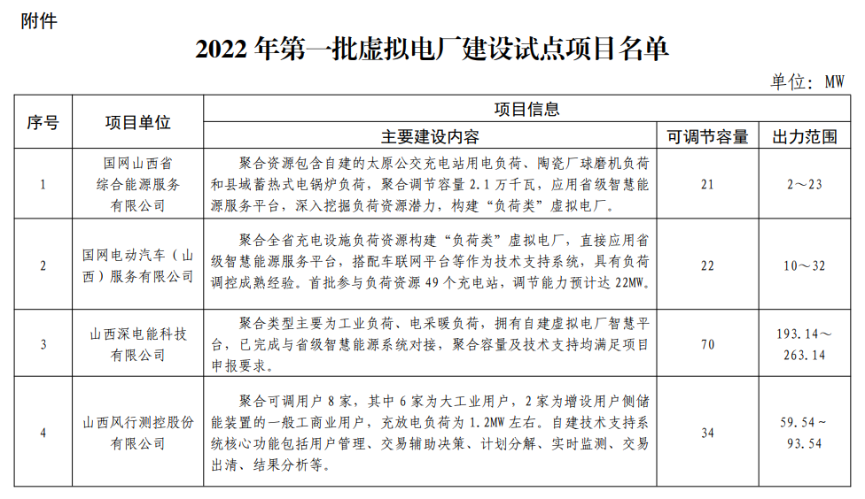 近日,山西省能源局發(fā)布關(guān)于2022年第一批虛擬電廠建設(shè)試點項目的公示。