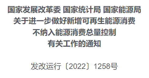 新增可再生能源電力消費量不納入能源消費總量控制,是完善能源消費強(qiáng)度和總量雙控制度的重要舉措,對推動能源清潔低碳轉(zhuǎn)型、保障高質(zhì)量發(fā)展合理用能需求具有重要意義。為貫徹落實黨中央、國務(wù)院決策部署和中央經(jīng)濟(jì)工作會議精神,落實《“十四五”節(jié)能減排綜合工作方案》有關(guān)要求,有序推進(jìn)新增可再生能源電力消費量不納入能源消費總量控制,現(xiàn)就有關(guān)事項通知如下。