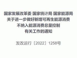 11月16日,國家發(fā)展改革委、國家統(tǒng)計局、國家能源局聯(lián)合印發(fā)《關(guān)于進(jìn)一步做好新增可再生能源消費不納入能源消費總量控制有關(guān)工作》的通知,通知要求,準(zhǔn)確界定新增可再生能源電力消費量范圍,不納入能源消費總量的可再生能源,現(xiàn)階段主要包括風(fēng)電、太陽能發(fā)電、水電、生物質(zhì)發(fā)電、地?zé)崮馨l(fā)電等可再生能源。