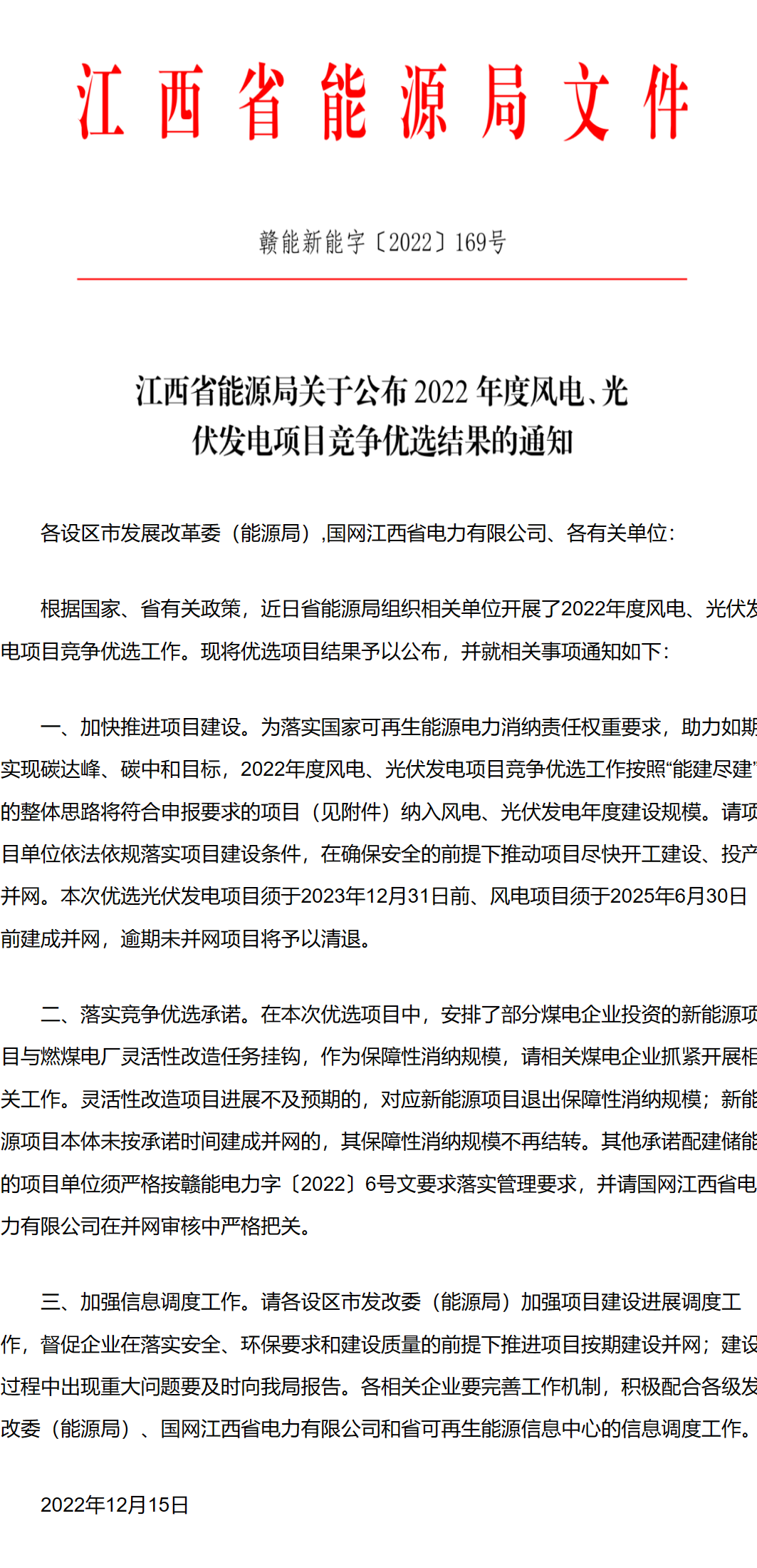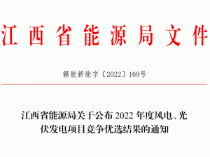 12月15日,江西省能源局公布了2022年度風(fēng)電、光伏發(fā)電項目競爭優(yōu)選結(jié)果。