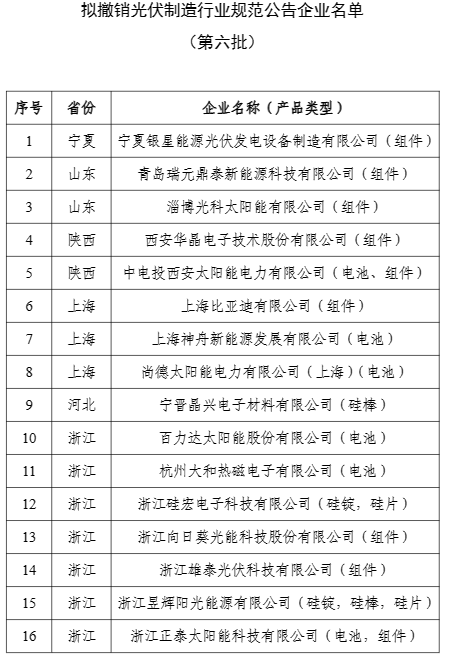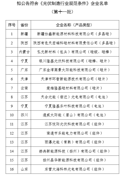 15日, 工信部發(fā)布擬公告符合《光伏制造行業(yè)規(guī)范條件》企業(yè)名單(第十一批)和擬撤銷光伏制造行業(yè)規(guī)范公告企業(yè)名單(第六批)公示。