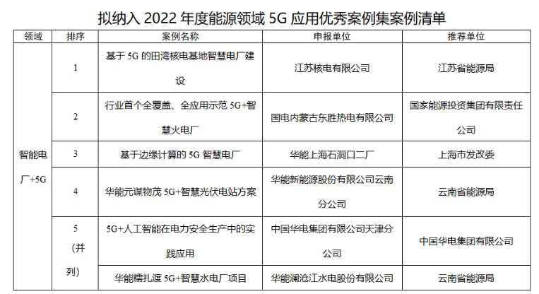 日前,國家能源局印發(fā)'f關(guān)于公示擬納入2022年度能源領(lǐng)域5G應(yīng)用優(yōu)秀案例集案例的通知。