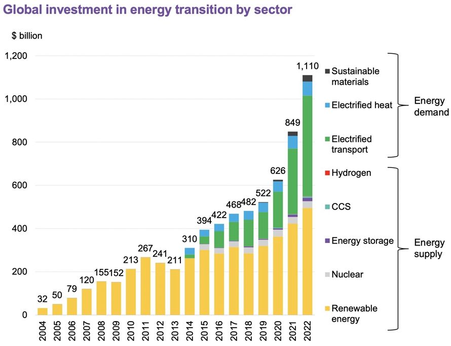 這份《能源轉(zhuǎn)型投資趨勢(shì)》報(bào)告涵蓋的所有行業(yè)幾乎都在2022年實(shí)現(xiàn)了創(chuàng)紀(jì)錄的投資