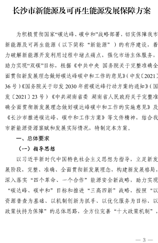 據(jù)長沙市發(fā)展改革委官網(wǎng),近日,《長沙市新能源及可再生能源發(fā)展保障方案》正式發(fā)布施行!斗桨浮凡渴鹆耸畟(gè)方面的重點(diǎn)任務(wù),不少措施著力破解新能源開發(fā)利用過程中堵點(diǎn)、痛點(diǎn),切實(shí)保障長沙新能源及可再生能源的有序建設(shè),助力實(shí)現(xiàn)“雙碳”目標(biāo)。《保障方案》主要內(nèi)容包括總體要求、主要目標(biāo)、重點(diǎn)任務(wù)三個(gè)部分,全面銜