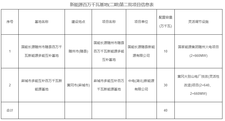 1:新能源百萬千瓦基地(二期)第二批項目信息表