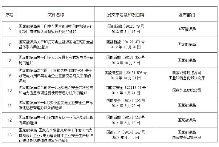 國(guó)家能源局決定廢止的部分規(guī)范性文件目錄如下: