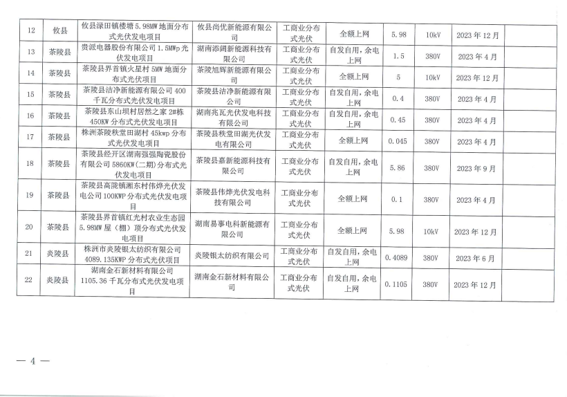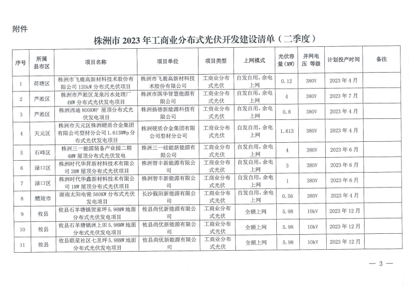 日前,株洲市發(fā)改委發(fā)布2023年工商業(yè)分布式光伏開發(fā)建設(shè)清單(二季度)的通知。通知強(qiáng)調(diào),各縣市區(qū)要加強(qiáng)項目指導(dǎo).監(jiān)督和管理,確保項目按時建成并網(wǎng)。對于逾期6個月仍未并網(wǎng)的項目,將調(diào)出建設(shè)清單。以下是通知和清單原文: