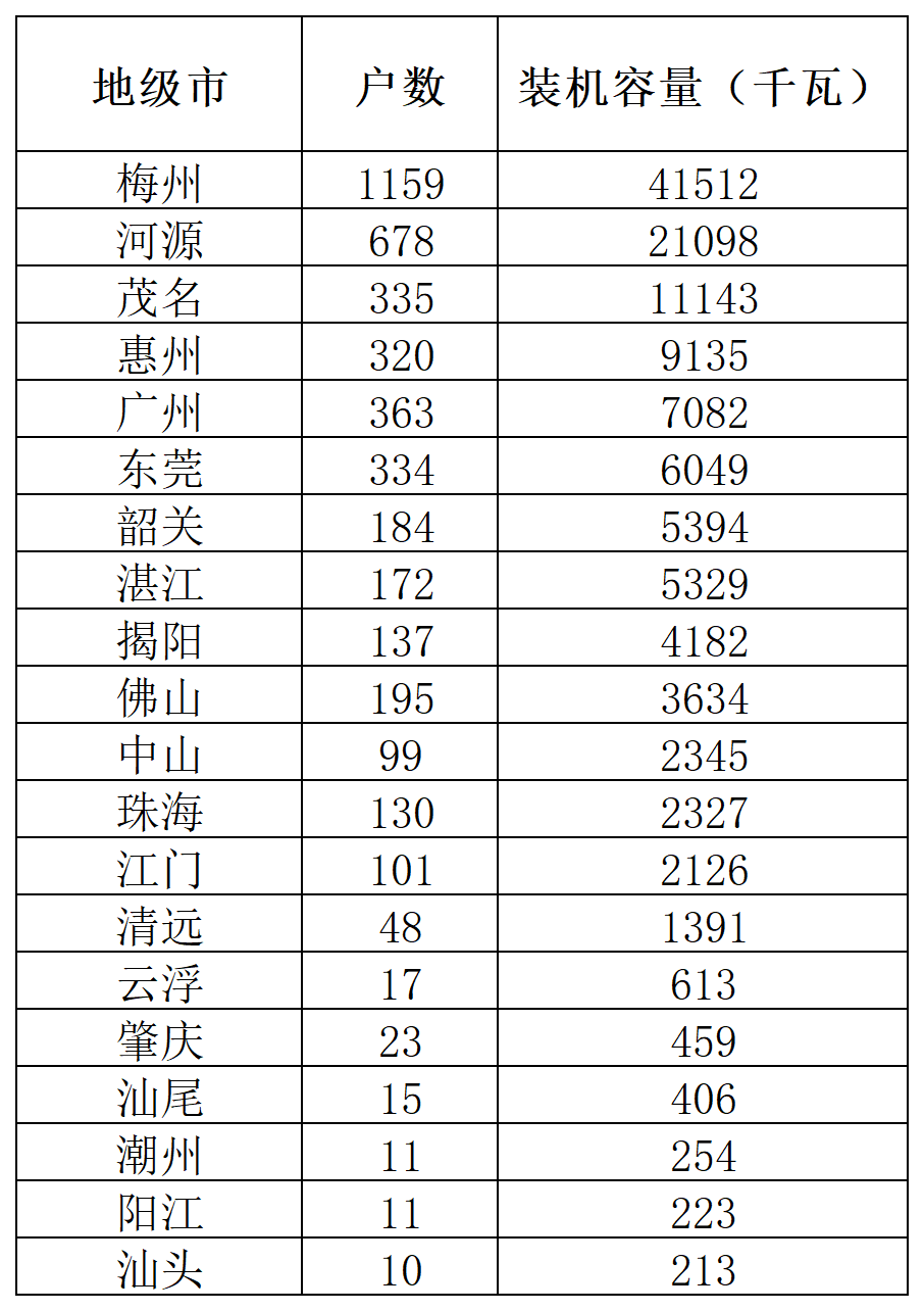 日前,根據(jù)《國(guó)家能源局綜合司關(guān)于按月公布和報(bào)送戶用光伏項(xiàng)目信息有關(guān)事項(xiàng)的通知》等文件中關(guān)于戶用光伏項(xiàng)目管理的有關(guān)要求,廣東電網(wǎng)有限責(zé)任公司公布了關(guān)于屬地區(qū)域2023年1月至3月并網(wǎng)投運(yùn)的戶用光伏項(xiàng)目信息。據(jù)信息顯示,2023年一季度,廣東省新增戶用裝機(jī)4347戶,總規(guī)模為125MW,其中梅州、河源、茂名位列前三。
