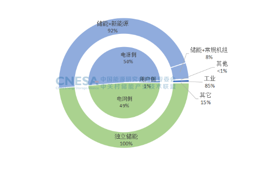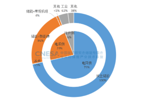 圖 5. 中國(guó)新增新型儲(chǔ)能項(xiàng)目應(yīng)用分布(2023.Q1)MW%