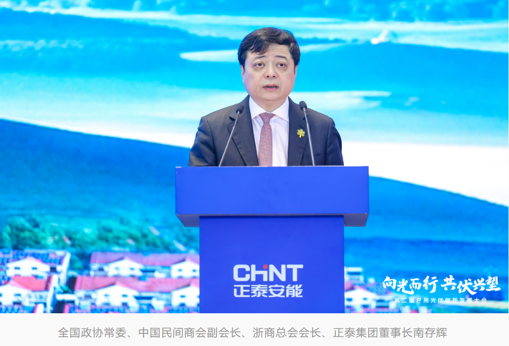 全國(guó)政協(xié)常委、中國(guó)民間商會(huì)副會(huì)長(zhǎng)、浙商總會(huì)會(huì)長(zhǎng)、正泰集團(tuán)董事長(zhǎng)南存輝在致辭中表示,當(dāng)前,以綠色低碳為方向的新一輪能源革命正在全球蓬勃興起,在技術(shù)進(jìn)步與政策引導(dǎo)下,光伏已經(jīng)成為能源格局優(yōu)化的主要力量。截至3月底,我國(guó)光伏累計(jì)裝機(jī)量超越水電,成為全國(guó)第二大電源。在“鄉(xiāng)村振興”“雙碳”戰(zhàn)略的雙重驅(qū)動(dòng)下,戶用光伏全面駛向發(fā)展快車道。