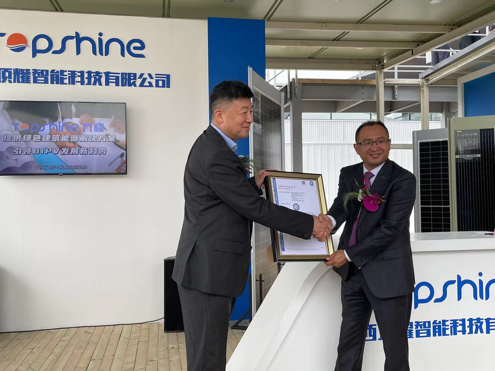 5月24日, TÜV南德意志集團(tuán)于第十六屆(2023)國際太陽能光伏與智慧能源(上海)大會暨展覽會期間為江西頂耀智能科技有限公司的BIPV3.0產(chǎn)品頒發(fā)基于技術(shù)規(guī)范標(biāo)準(zhǔn)IEC 61215和IEC 61730 的TÜV南德認(rèn)證證書,并達(dá)成長期戰(zhàn)略合作。