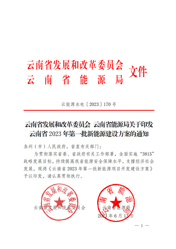 6月13日,云南發(fā)改委、能源局聯(lián)合印發(fā)《云南省2023年第一批新能源建設(shè)方案》。方案明確,為確保實(shí)現(xiàn)2023年新開工新能源1500萬千瓦、投產(chǎn)并網(wǎng)新能源項(xiàng)目裝機(jī)1500萬千瓦的目標(biāo),納入云南省2023年第一批新能源年度建設(shè)方案實(shí)施的項(xiàng)目共154個(gè),裝機(jī)1579.17萬千瓦。 通知要求,州(市)要按照本批次項(xiàng)目清單,
