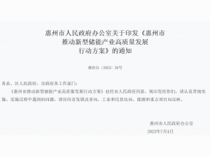 惠州市推動新型儲能產(chǎn)業(yè)高質(zhì)量發(fā)展行動方案