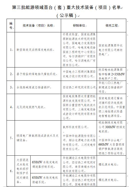 為持續(xù)推進(jìn)能源領(lǐng)域首臺(套)重大技術(shù)裝備示范應(yīng)用,加快能源重大技術(shù)裝備創(chuàng)新,切實保障關(guān)鍵技術(shù)裝備產(chǎn)業(yè)鏈供應(yīng)鏈安全,國家能源局組織了第三批能源領(lǐng)域首臺(套)重大技術(shù)裝備申報及評定工作。經(jīng)組織專家評審和復(fù)核,擬將“新型高效靈活燃煤發(fā)電機(jī)組”等58項技術(shù)裝備列入第三批能源領(lǐng)域首臺(套)重大技術(shù)裝備項目清單。公示時間:2023年7月27日至8月2日。