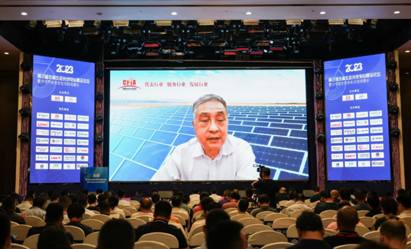 由中國(guó)光伏行業(yè)協(xié)會(huì)、中國(guó)投資協(xié)會(huì)聯(lián)合主辦的“第三屆(2023)沙漠生態(tài)光伏電站建設(shè)論壇暨沙戈荒光伏發(fā)電項(xiàng)目觀摩會(huì)” 經(jīng)過三天的探討與交流,近日在烏魯木齊圓滿落下帷幕。本次論壇著眼于新疆維吾爾自治區(qū)光伏大基地建設(shè)經(jīng)驗(yàn)和運(yùn)維實(shí)際,探討沙戈荒光伏電站建設(shè)與管理中的熱點(diǎn)與難點(diǎn)問題,為國(guó)家制訂行業(yè)政策提供建設(shè)性意見。中國(guó)光伏行業(yè)協(xié)會(huì)名譽(yù)理事長(zhǎng)王勃華以視頻方式出席會(huì)議并致辭。