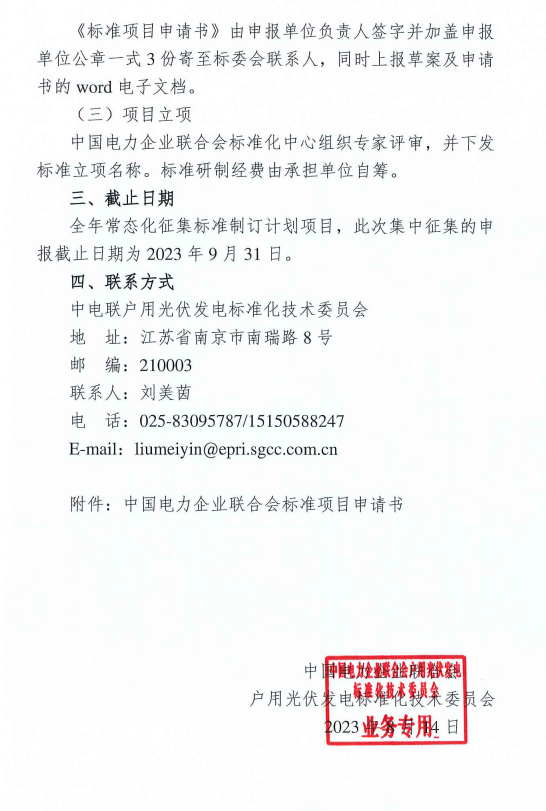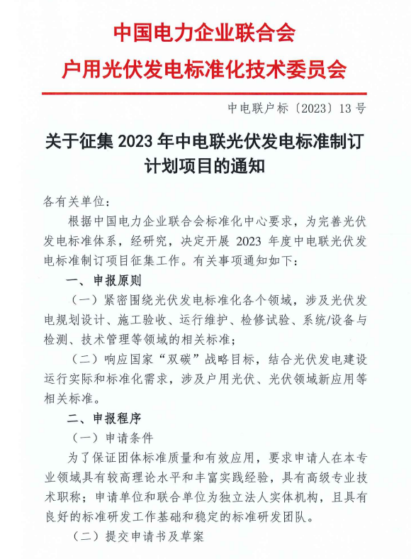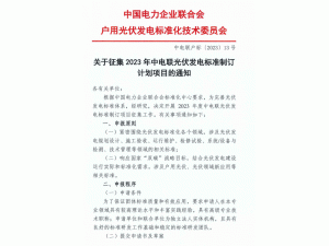 關(guān)于征集2023年中電聯(lián)光伏發(fā)電標(biāo)準(zhǔn)制定計劃項目的通知