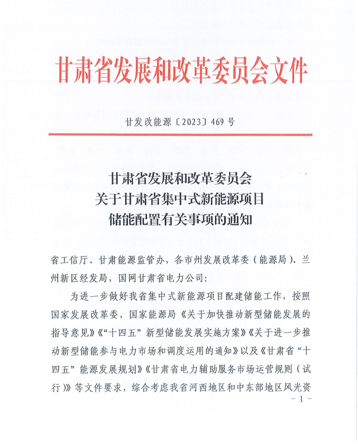 8月15日,甘肅省發(fā)改委下發(fā)《關(guān)于甘肅省集中式新能源項目儲能配置有關(guān)事項的通知》, 鼓勵新能源項目分地區(qū)差異化配置新型儲能。鼓勵區(qū)域內(nèi)新能源開發(fā)企業(yè)自建、合建或由第三方企業(yè)建設(shè)共享儲能電站。鼓勵發(fā)電企業(yè)、售電企業(yè)、電力用戶、輔助服務(wù)提供商各類企業(yè)投資建設(shè)電網(wǎng)側(cè)獨立儲能。