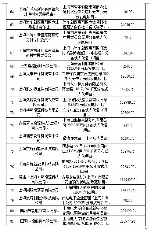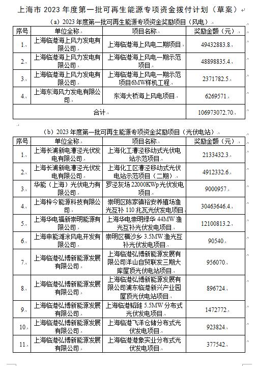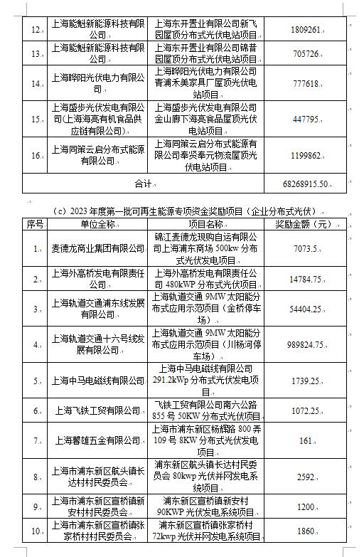 上海市2023年度第一批可再生能源專項(xiàng)資金撥付計(jì)劃(草案)部分名單: