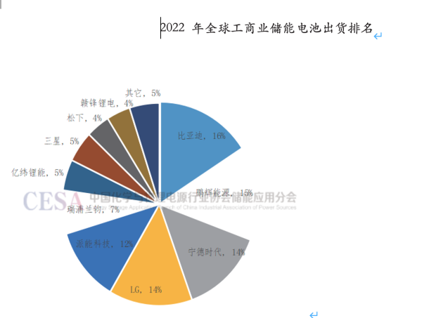 同時,在2022年的全球工商業(yè)儲能電池出貨排名中,比亞迪、鵬輝能源、寧德時代等企業(yè)躋身前列。