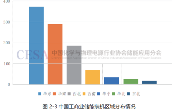 華東區(qū)域的工商業(yè)儲能裝機(jī)主要分布在浙江和江蘇兩個用電大省,其峰谷差價較高、補(bǔ)貼政策多,工商業(yè)企業(yè)布局儲能積極性高。