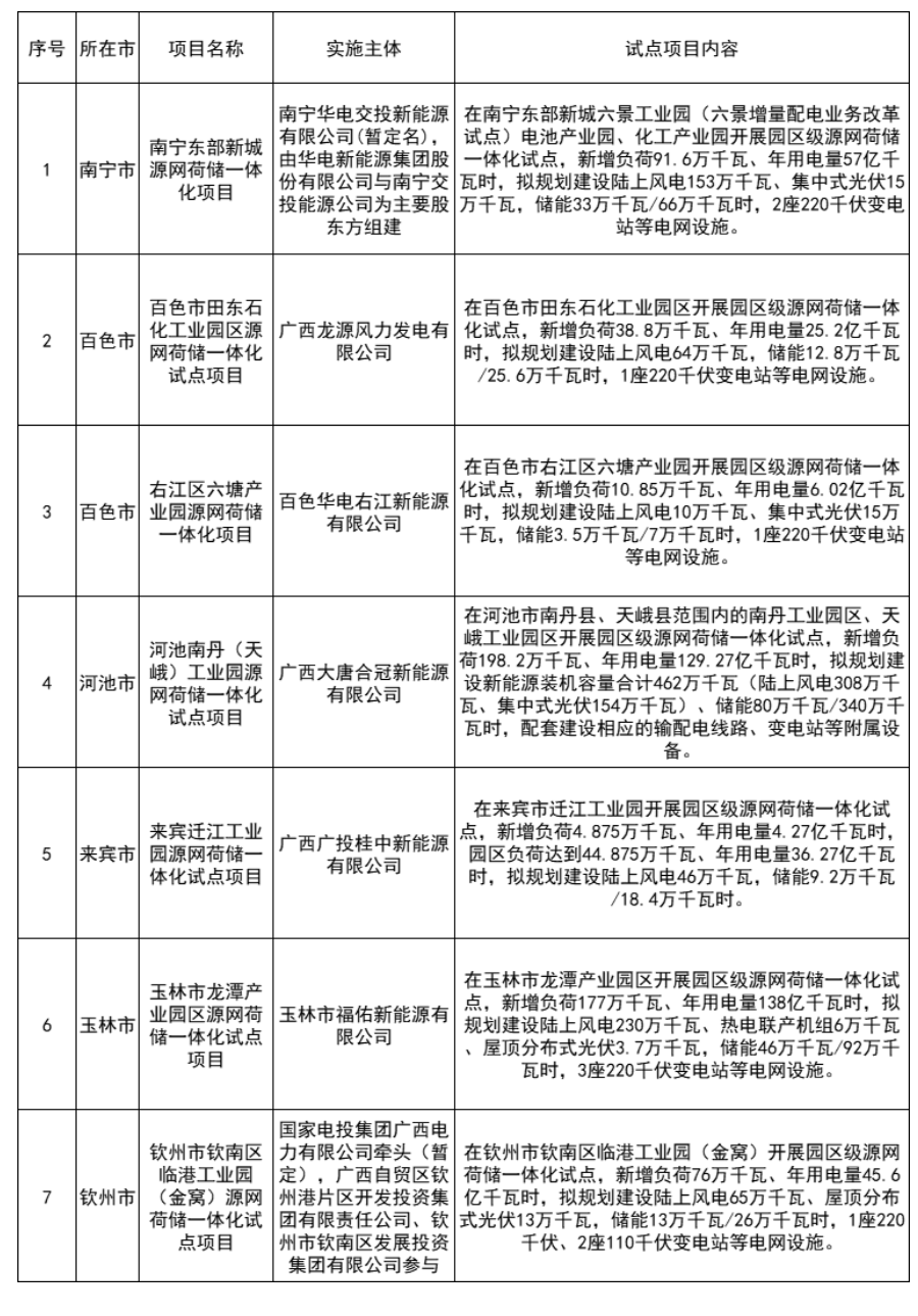 廣西壯族自治區(qū)發(fā)展和改革委員會(huì)關(guān)于源網(wǎng)荷儲(chǔ)一體化試點(diǎn)項(xiàng)目評估結(jié)果的公示