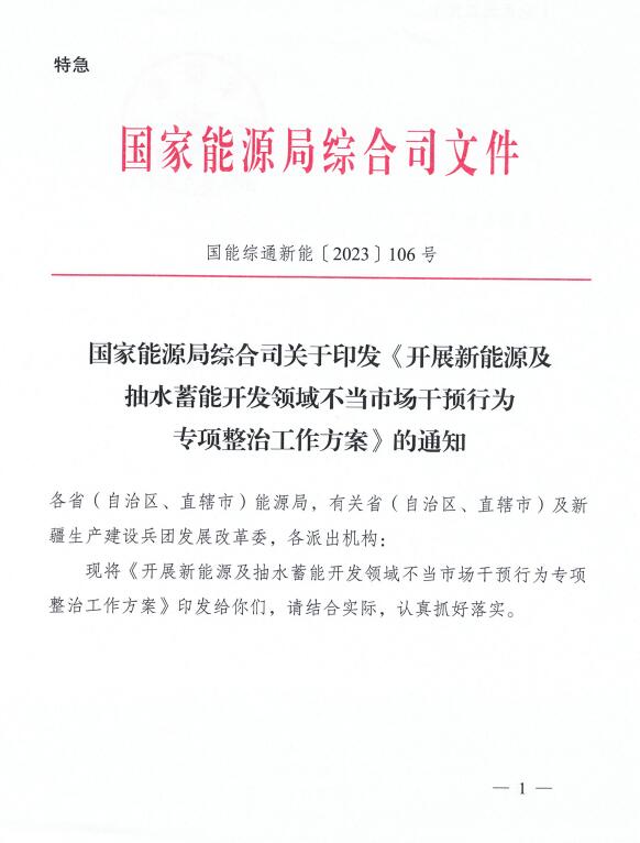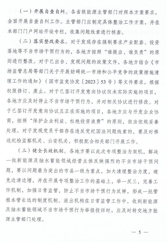 附《國家能源局綜合司關于印發(fā)<開展新能源及抽水蓄能開發(fā)領域不當市場干預行為專項整治工作方案>的通知》: