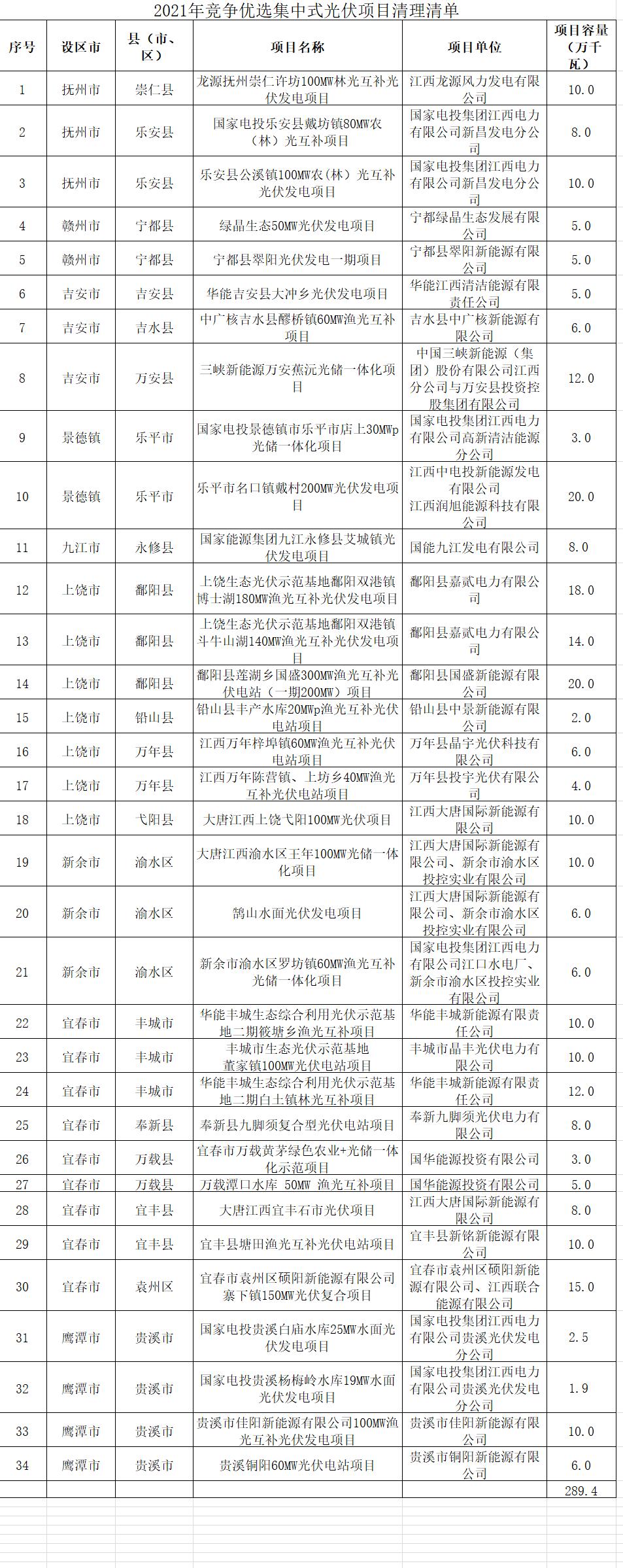 截至2023年9月30日,納入2021年競爭優(yōu)選方案的光伏項(xiàng)目中,有34個(gè)項(xiàng)目、裝機(jī)289.4萬千瓦未開工(詳見附件1),按照要求現(xiàn)取消上述項(xiàng)目建設(shè)規(guī)模,騰退相應(yīng)電網(wǎng)消納空間。