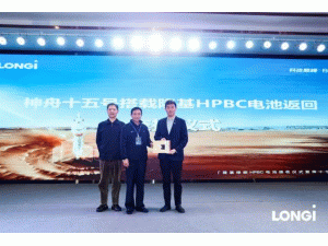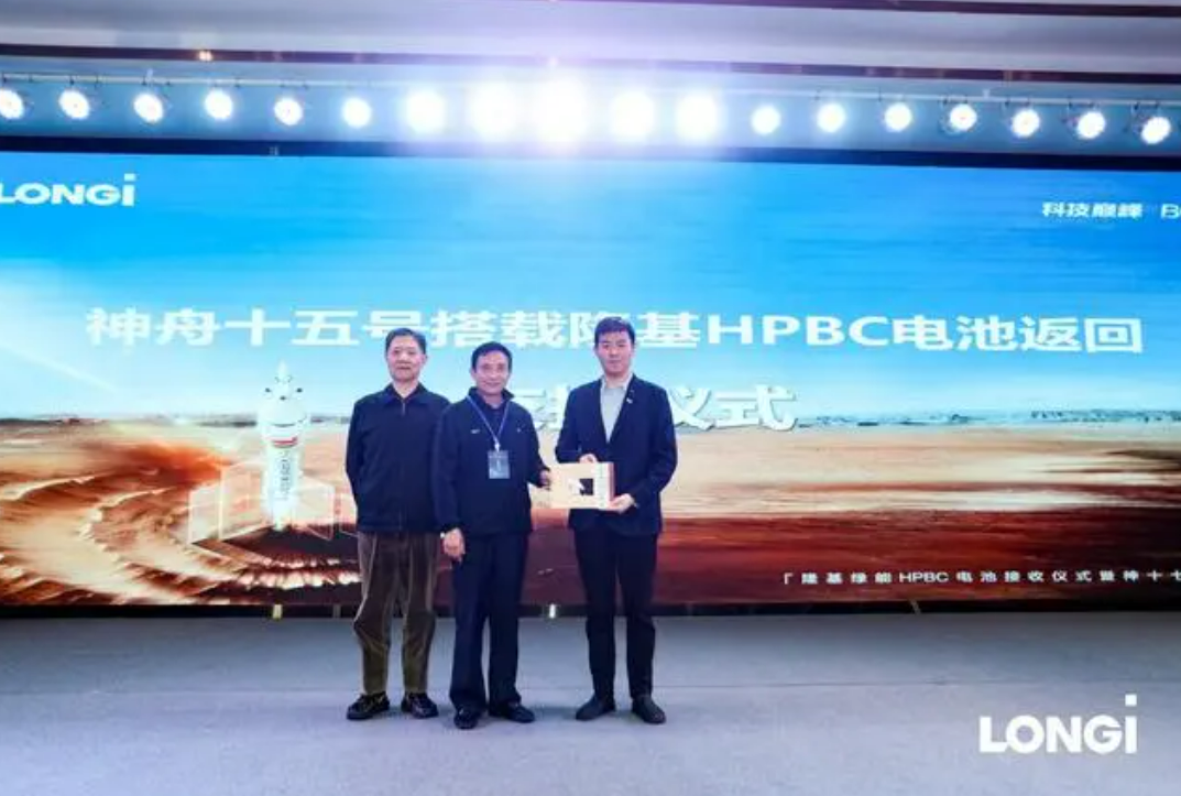 隆基綠能HPBC電池于2022年11月29日搭載神舟十五號載人飛船至太空,在經(jīng)歷了為期半年的太空環(huán)境驗證后返回地面,在廣大媒體與行業(yè)嘉賓的見證下,于2023年10月25日舉辦了接收儀式。