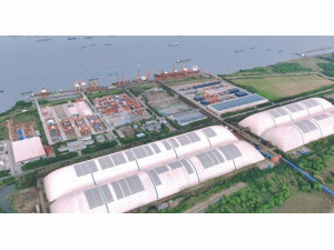 錄安洲氣膜光伏大棚位于錄安洲港區(qū)一、二期散貨堆場(chǎng)內(nèi),配套完成全流程和主廊道封閉,一次可堆存礦石等散貨150萬(wàn)噸,整體裝取流程從船到庫(kù)、從庫(kù)到船都實(shí)現(xiàn)全封閉。此外,棚內(nèi)還建設(shè)了雨污水收集處理設(shè)施,內(nèi)部?jī)商幬鬯乜蓪⒒祀s著礦石粉、煤粉等污染物的污水凈化處理,再進(jìn)入清水池檢驗(yàn)合格后直接排出,每年可減少污水約28萬(wàn)噸。