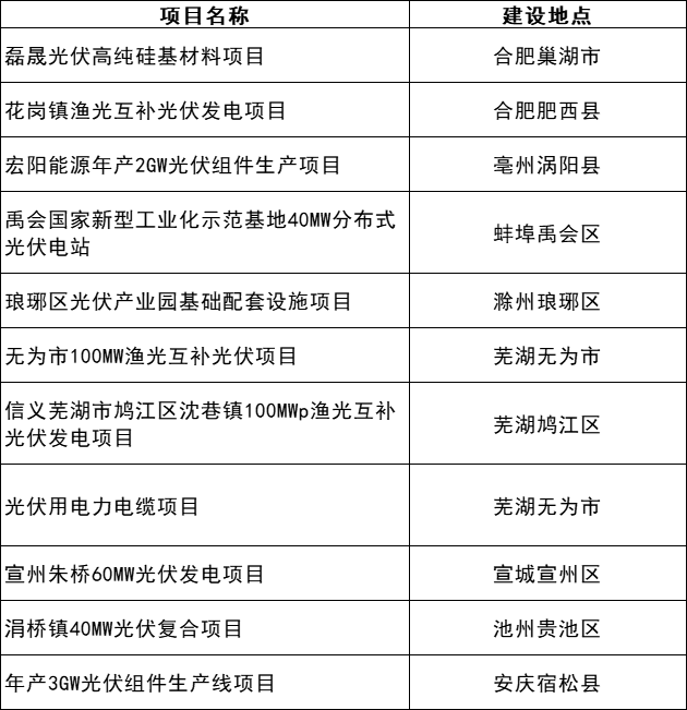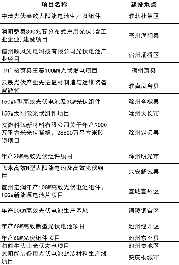 安徽省2023年重點項目清單(第二批)(A類)(光伏)