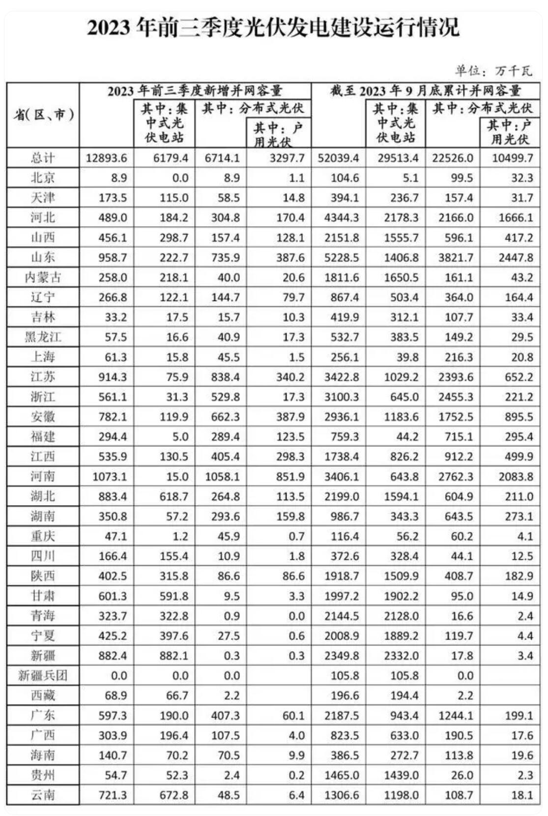 國家能源局:2023年前三季度光伏發(fā)電建設(shè)運(yùn)行情況