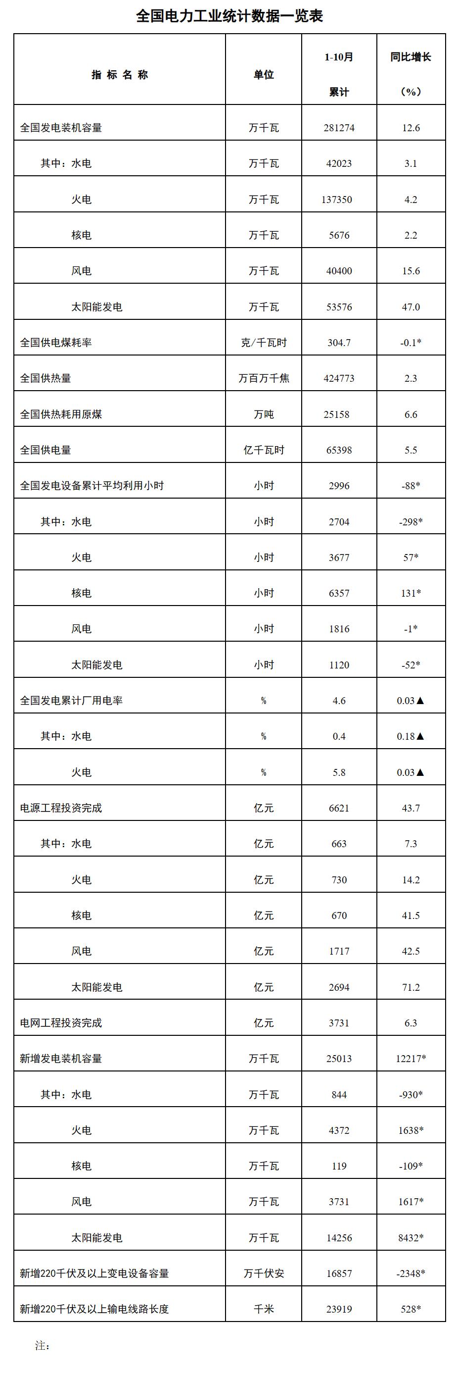 11月20日,國(guó)家能源局發(fā)布1-10月份全國(guó)電力工業(yè)統(tǒng)計(jì)數(shù)據(jù)。