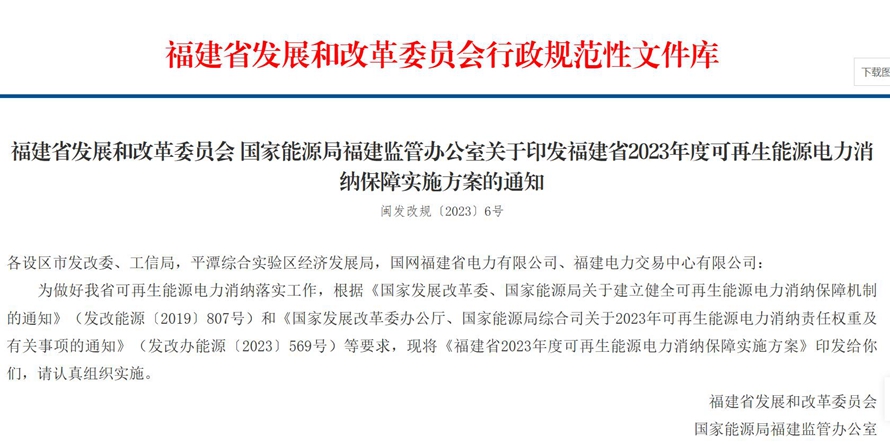 福建省2023年度可再生能源電力消納保障實(shí)施方案