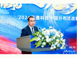 中國光伏行業(yè)協(xié)會副秘書長江華致辭表示,2023年,我國光伏新增裝機、制造端產(chǎn)量皆創(chuàng)歷史新高,光伏制造端產(chǎn)值同比創(chuàng)歷史新高,發(fā)展態(tài)勢強勁。晶澳科技作為老牌龍頭光伏企業(yè)之一,也是最早布局分布式光伏市場的企業(yè)之一,已成功穿越光伏行業(yè)“三落四起”的發(fā)展周期,期待晶澳科技在2024年以更強的戰(zhàn)略規(guī)劃、更領(lǐng)先的行動方案和產(chǎn)品服務(wù),為光伏行業(yè)注入澎湃發(fā)展動力,助力分布式光伏實現(xiàn)大發(fā)展。