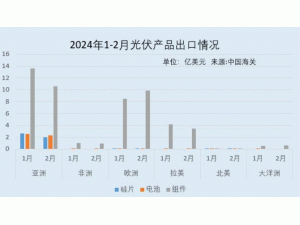 今年1-2月份,我國對亞洲出口光伏產品合計33.67億美元,比去年同期的31.63億美元,增長6.45%。