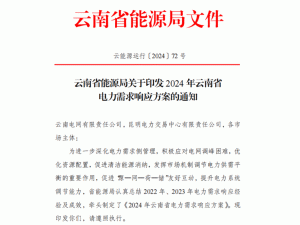 4月25日,云南省能源局關(guān)于印發(fā)2024年云南省電力需求響應(yīng)方案的通知: