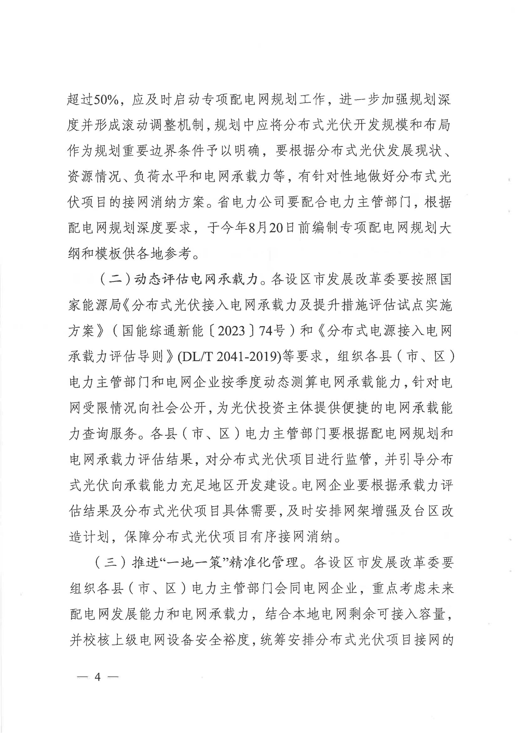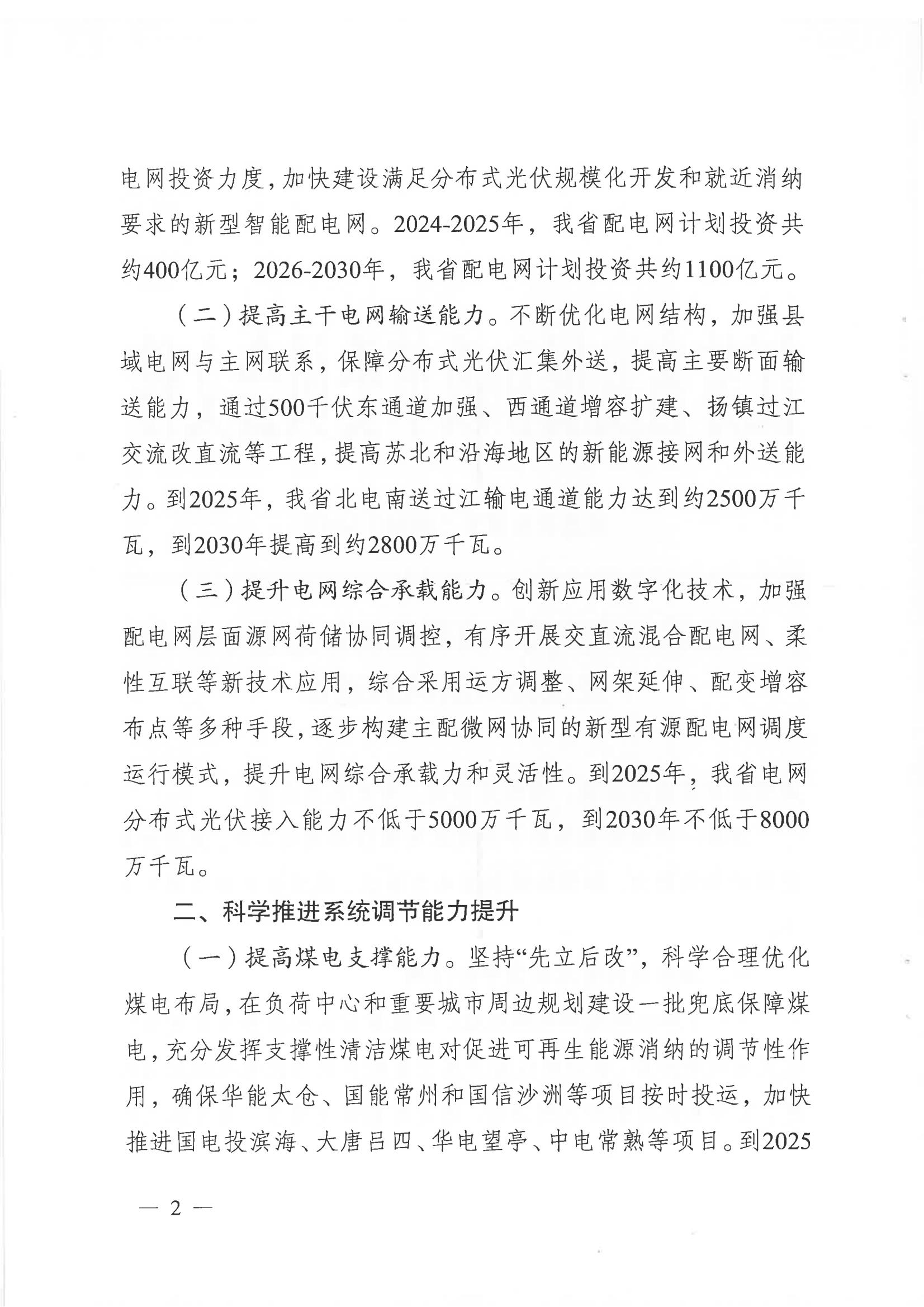 江蘇省發(fā)改委印發(fā)《省發(fā)展改革委關(guān)于高質(zhì)量做好全省分布式光伏接網(wǎng)消納的通知》,未來將重點(diǎn)提升電網(wǎng)綜合承載能力,到2025年分布式光伏接網(wǎng)能力將擴(kuò)容至50GW以上,到2030年將不低于80GW。在具體措施方面,部分資源條件較好的地區(qū)可適當(dāng)放寬新能源消納利用率條件,分布式光伏滲透率超過50%,則及時(shí)啟動(dòng)專項(xiàng)配電網(wǎng)規(guī)劃工作。