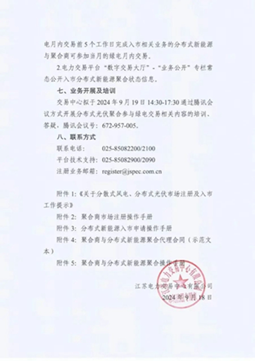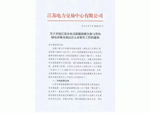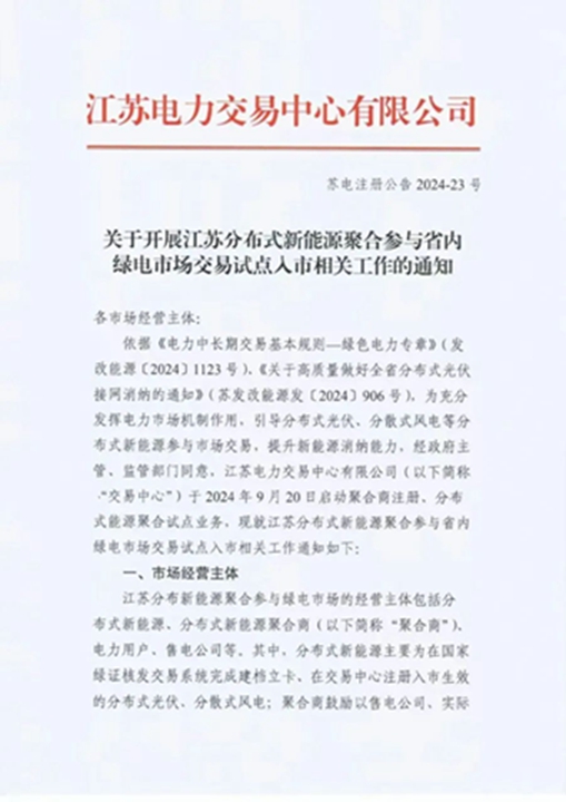 9月18日,江蘇省電力交易中心發(fā)布《關(guān)于開展江蘇分布式新能源聚合參與省內(nèi)綠電市場交易試點(diǎn)入市相關(guān)工作的通知》。