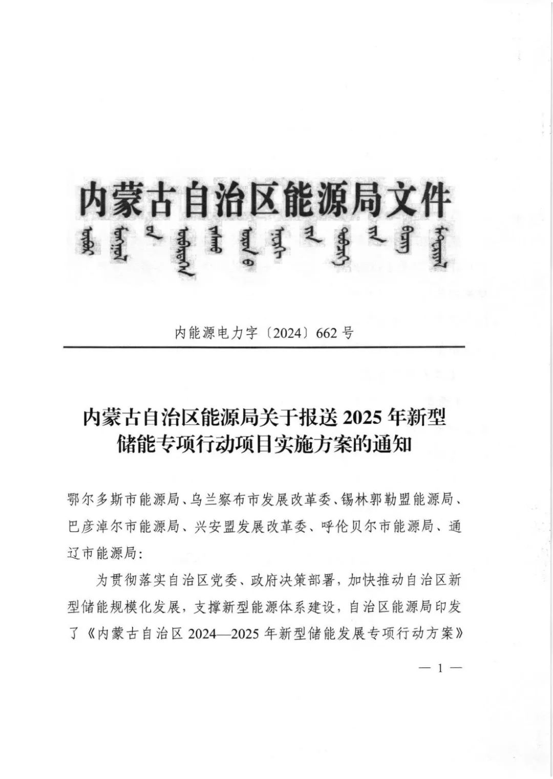9月29日,內(nèi)蒙古自治區(qū)能源局發(fā)布《關(guān)于報(bào)送2025年新型儲(chǔ)能專項(xiàng)行動(dòng)項(xiàng)目實(shí)施方案的通知》,本次納入2025年新型儲(chǔ)能專項(xiàng)行動(dòng)項(xiàng)目清單的儲(chǔ)能項(xiàng)目共9個(gè),裝機(jī)11GW/48GWh,平均時(shí)長(zhǎng)4.36h。