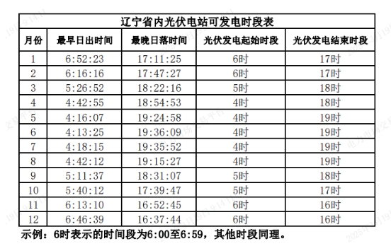 由于光伏電站發(fā)電依賴日出日落變化,以及不同區(qū)域和不同季節(jié)存在一定的差異性,遼寧電力交易中心從遼寧氣象部門獲得了全省各月份最早日出時間和最晚日落時間,并以此為依據(jù)制定了省內(nèi)光伏電站不同月份的可發(fā)電時間段(見下圖),現(xiàn)征求各光伏發(fā)電企業(yè)意見,如有異議,請?zhí)峁⿻嬉庖姡ǜ采w公章),截止時間3月23日17時。聯(lián)系人:馮占穩(wěn),024-23142801。