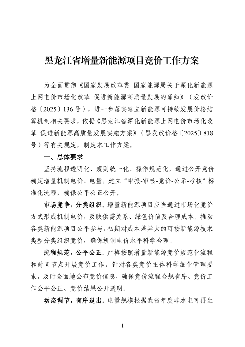 10月11日, 黑龍江發(fā)布《黑龍江省增量新能源項目競價工作方案》及《2025-2026年度新能源項目競價》公告。