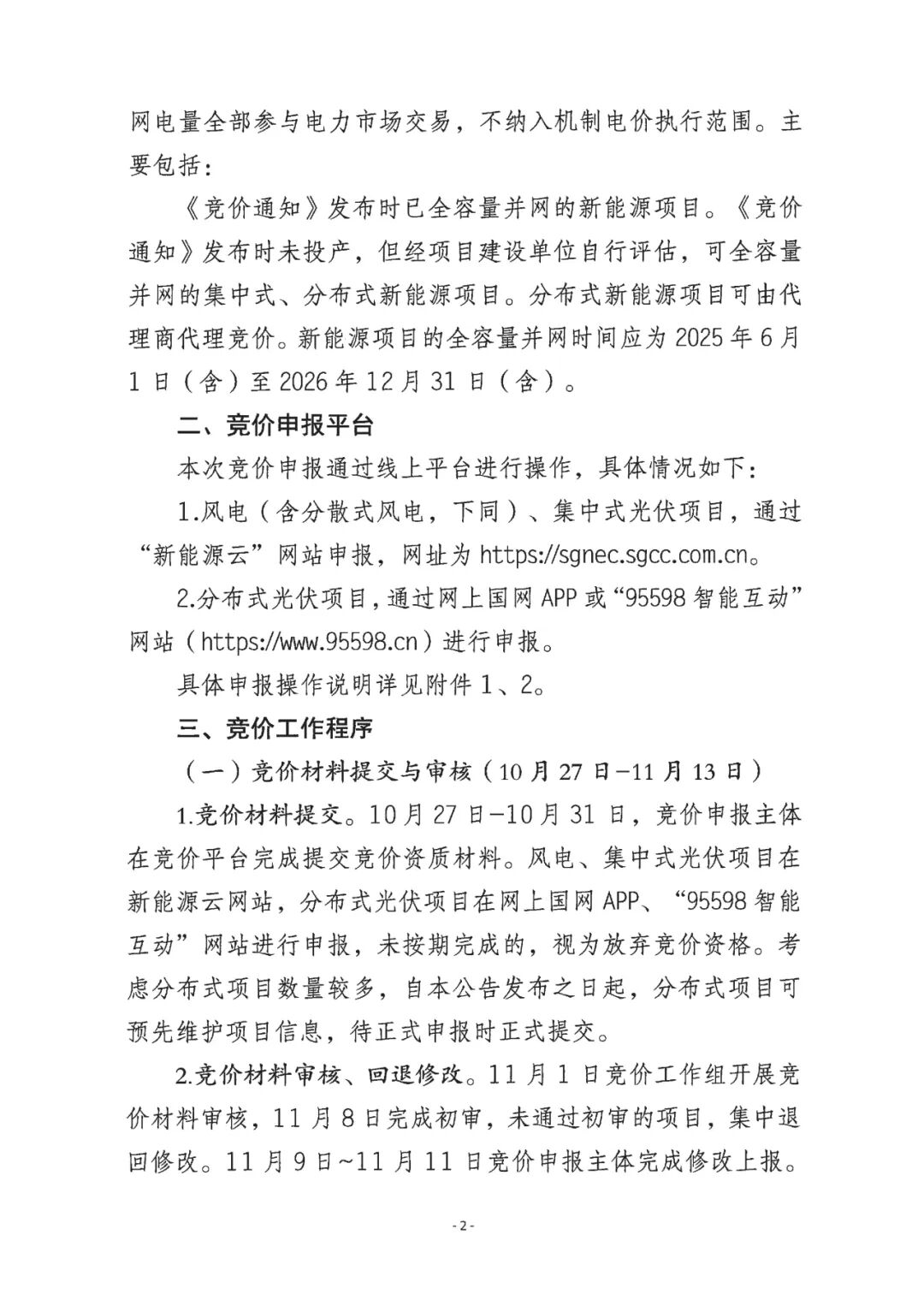 10月21日,河北電網(wǎng)、冀北電網(wǎng)分別發(fā)布《河北南網(wǎng)2025-2026年度新能源機(jī)制電價(jià)競(jìng)價(jià)組織公告》《冀北電網(wǎng) 2025-2026年度新能源機(jī)制電價(jià)競(jìng)價(jià)組織公告》,對(duì)2025年6月1日~2026年12月31日并網(wǎng)項(xiàng)目的機(jī)制電價(jià)競(jìng)價(jià)工作安排如下: