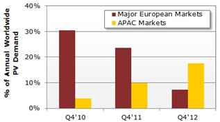 圖一、2012第四季需求從歐洲主要市場到亞太地區(qū)的轉(zhuǎn)換