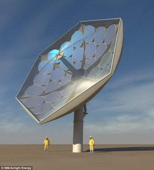 最新研制的經(jīng)濟(jì)高強(qiáng)度光電熱量系統(tǒng)(HCPVT),是一個(gè)巨大的盤(pán)面結(jié)構(gòu),裝配著多個(gè)鏡面,附加的跟蹤系統(tǒng)可改變朝向太陽(yáng)的角度