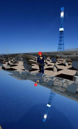 7月15日,電站工作人員鄧偉在對鏡場進(jìn)行巡檢。